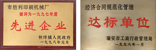 5月公司注册成立:瑞安市胜利印刷机械厂
