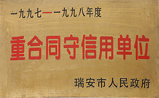 1月被评为“瑞安市重合同守信用单位”